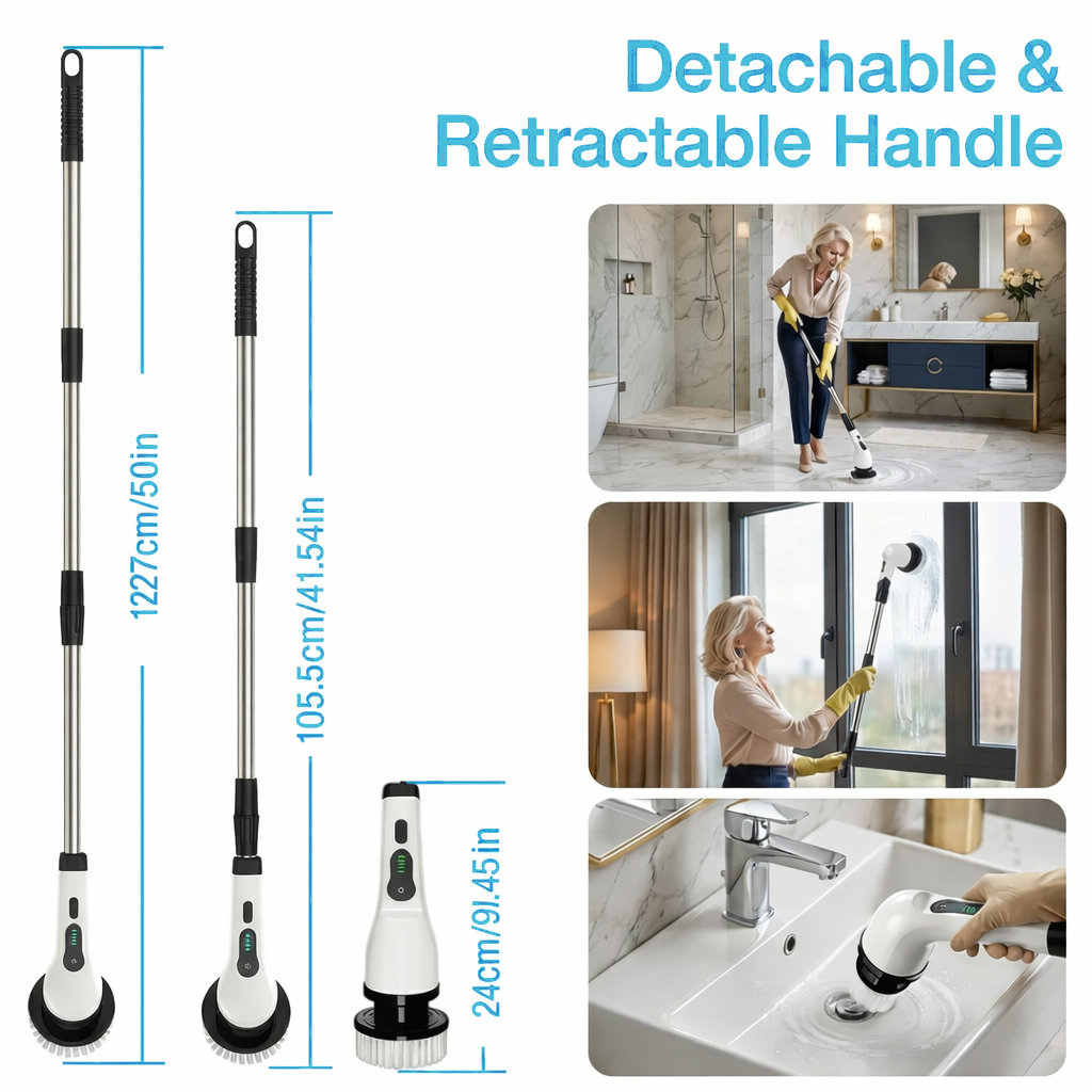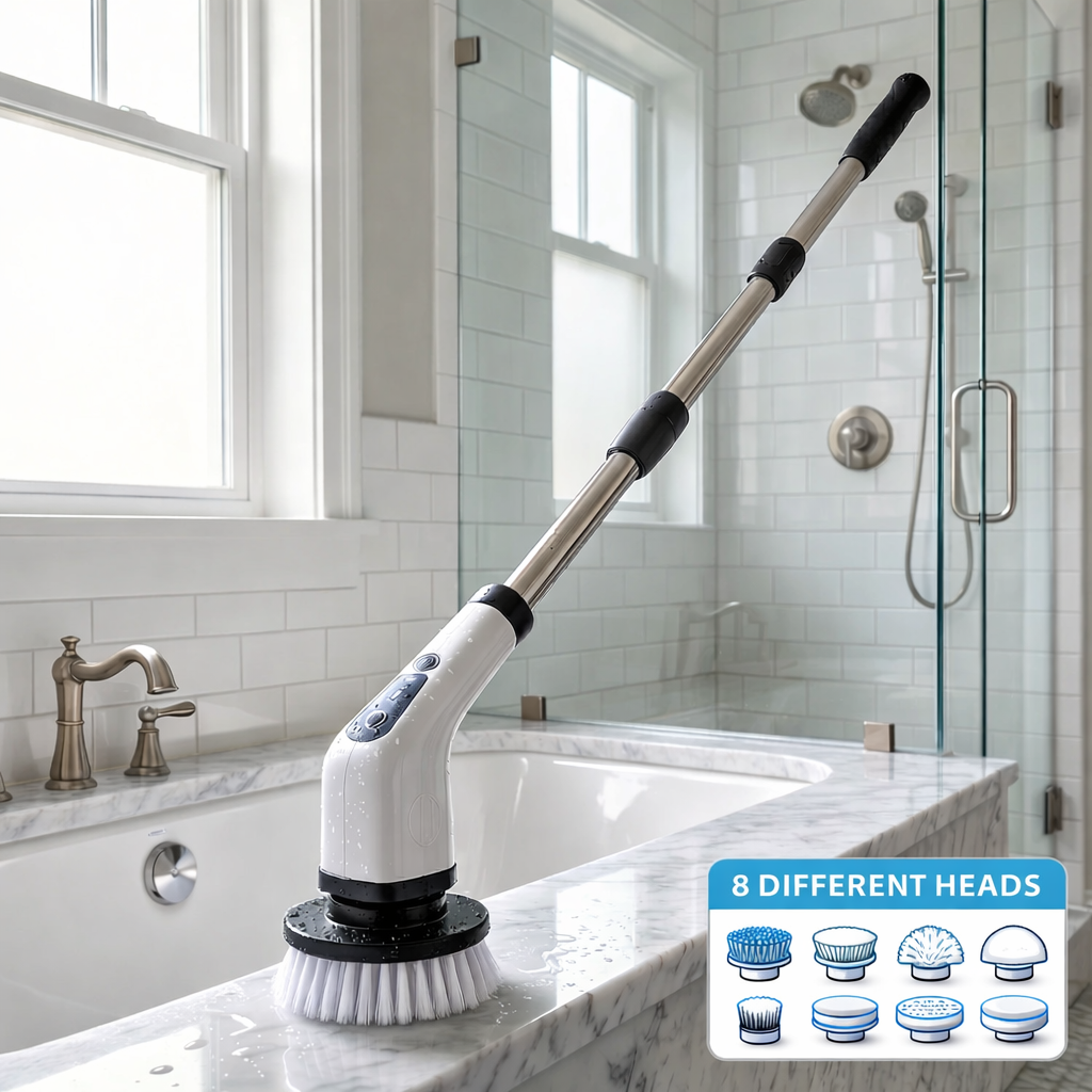 Our Spin Scrubber brings professional-level cleaning into your home routine. The combination of high-speed rotation, durable brush heads and an adjustable handle helps you tackle grime, soap scum and buildup with less effort.